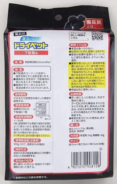 商品名 【消臭剤】備長炭ドライペット 下駄箱用
