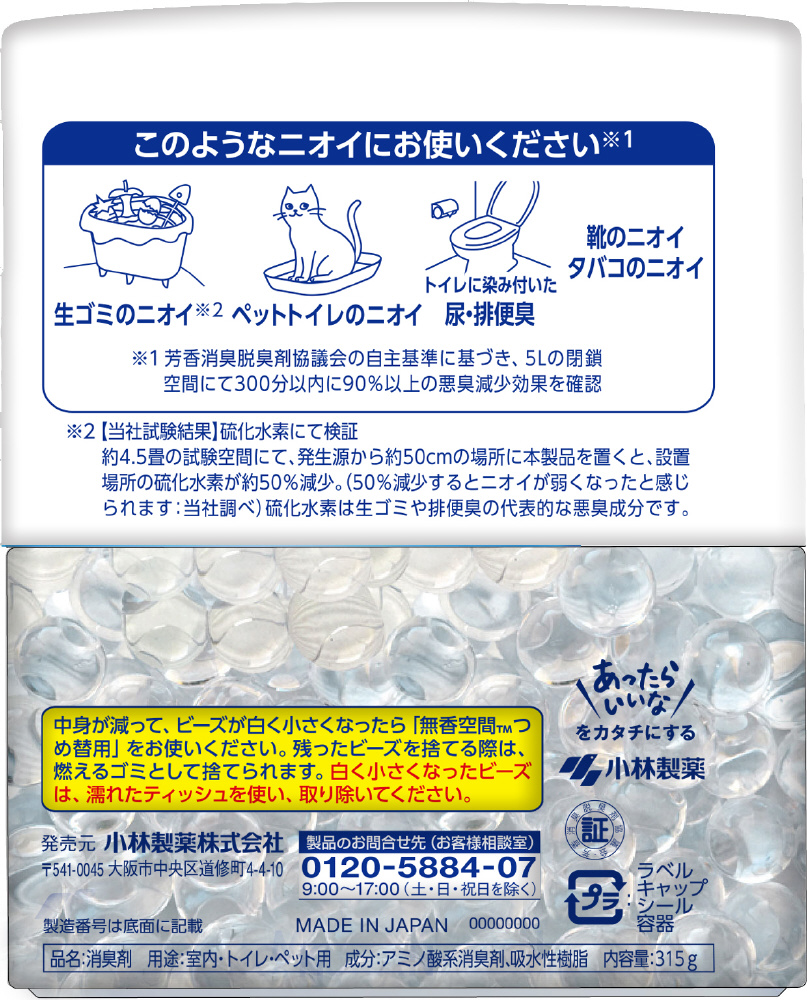 でっかい消臭ビーズがたっぷり。 約90日間しっかり消臭!
