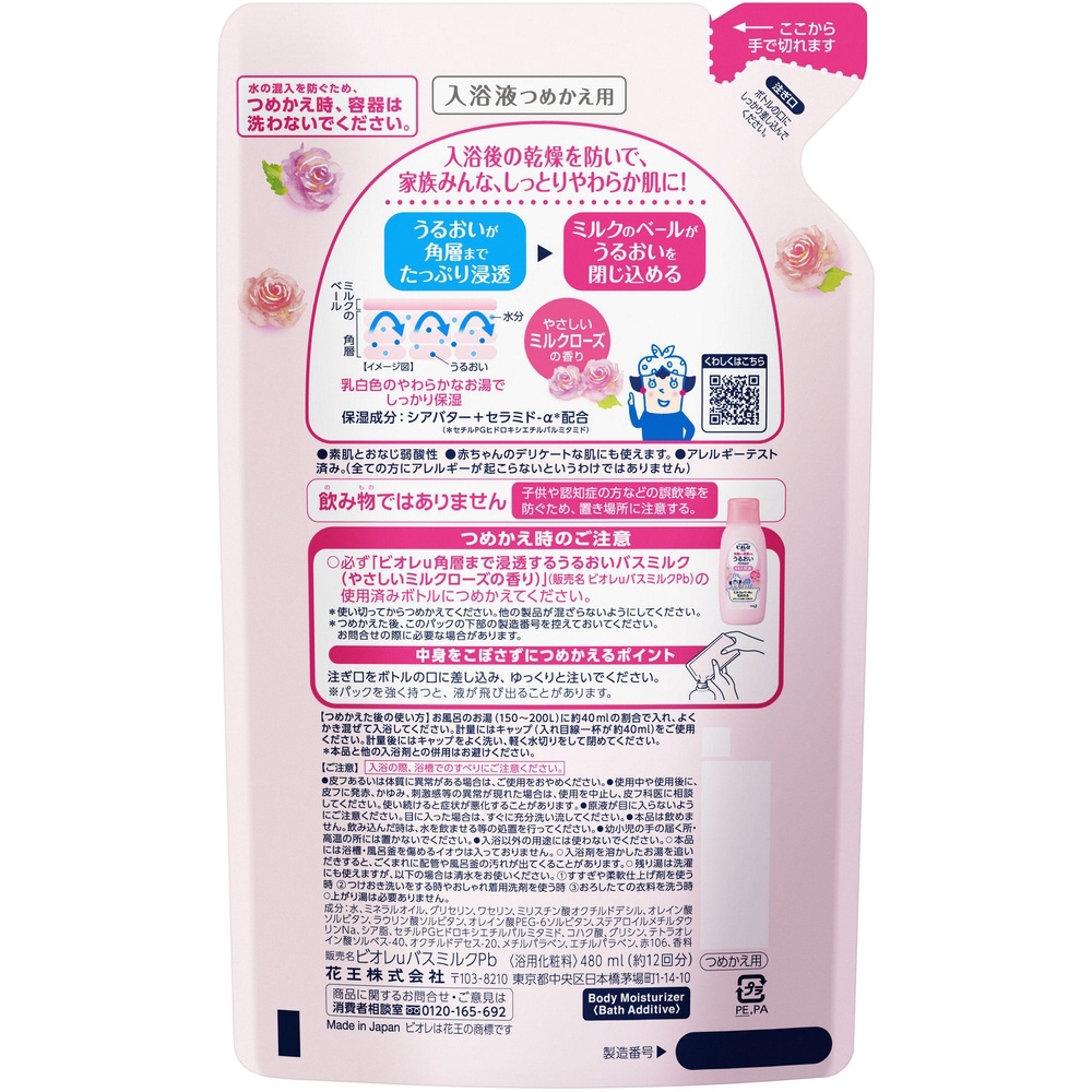 【ビオレu 】すべすべバスミルク ミルクローズの香り つめかえ用 (480ml)