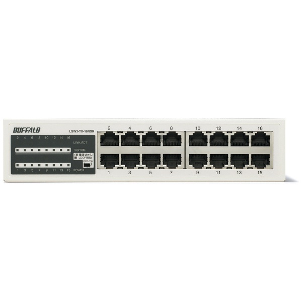 | 商品名 | LSW3-TX-16NSR(10/100MスイッチングHub 金属筐体/電源内蔵モデル/16ポート) |