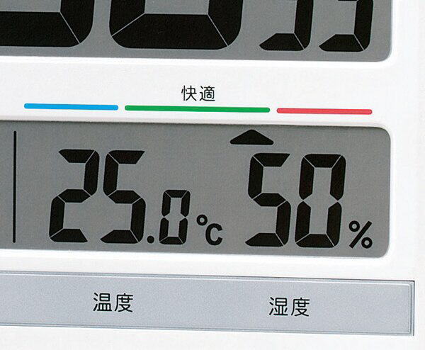 壁にぴったりフィットする、薄型設計の掛置兼用クロック。温湿度表示に加え、快適度表示が健康管理を応援!