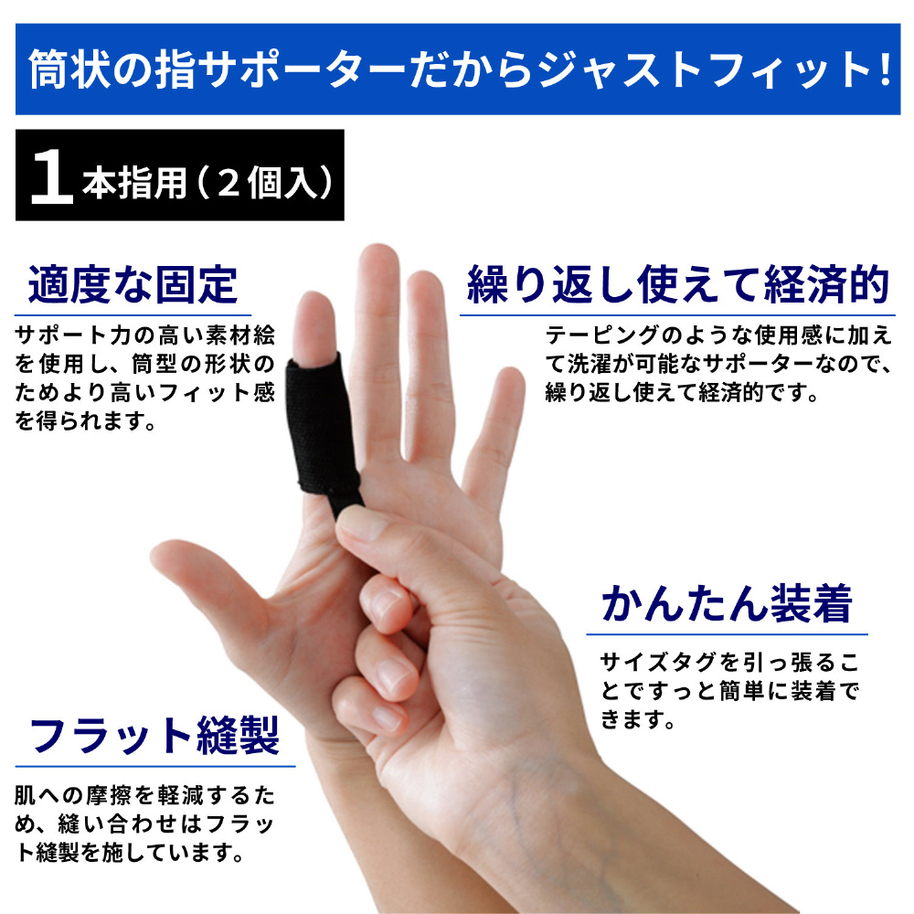 適度な締め付けで指の第二関節を保護!筒状サポーターだから、スッキリフィット。テーピングの代わりにオススメです。