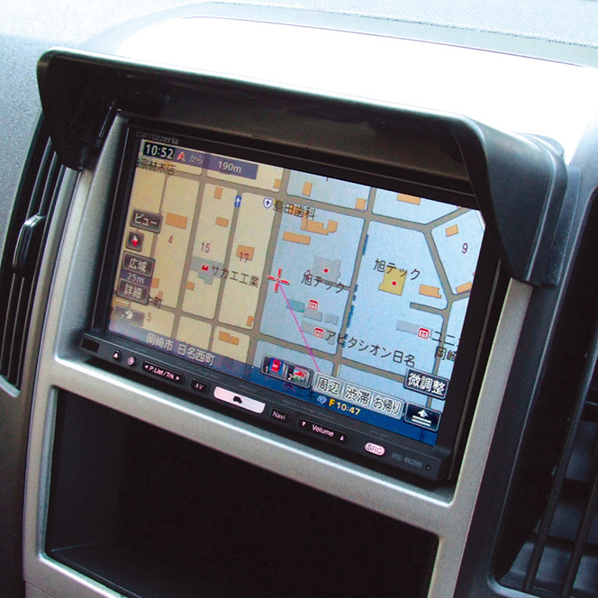 ◆液晶モニターへの日射しをカットし、画面を見やすくする日よけ。◆一部の日産車・スズキ車・トヨタ車の2DINナビ用です。◆両面テープで貼付けるだけの簡単装着。◆マジックテープで脱着可能。