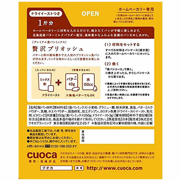 パン材料専門店が作りました、プレミアム 贅沢ブリオッシュ 食パンミックス。