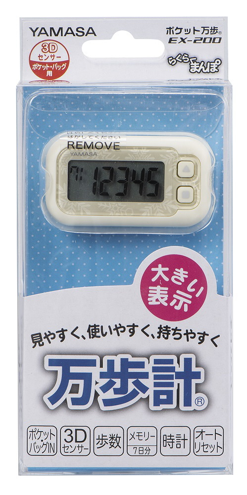 | 商品名 | EX-200-W スノーホワイト 歩数計 「ポケット万歩 らくらくまんぽ」 |