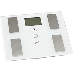 薄型でコンパクトなボディの体組成計です。体重、体脂肪率、内臓脂肪レベル、体筋肉量、骨量、基礎代謝量の6項目を計測可能。