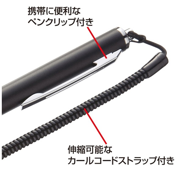 スマートフォン・タブレット・電子書籍・スレートPCなどに対応したタッチペン。伸縮可能なカールコードストラップ付き。