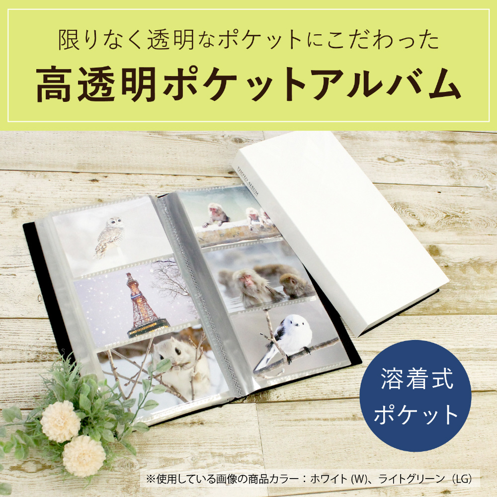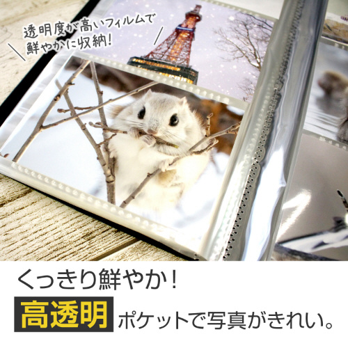 写真が映える高透明ポケットを採用した、写真の収容が簡単なポケットアルバム。