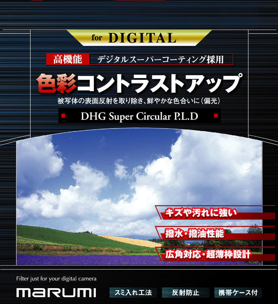 過酷な条件下でも抜群の安定性能を発揮する「デジタルスーパーコーティング」を採用した、 抜群の撥水・撥油・防汚性能でメンテナンス性の高さが魅力の高機能偏光フィルターです。