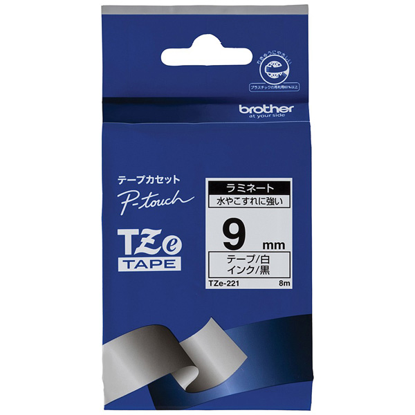 ラベルライター用ラミネートテープ 9mm幅 (黒文字/白) TZe-221