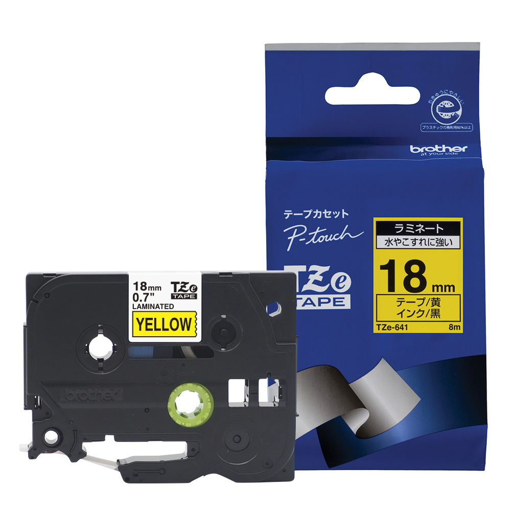 | 商品名 | ラベルライター用ラミネートテープ 18mm幅(黒文字/黄) TZe-641 |
