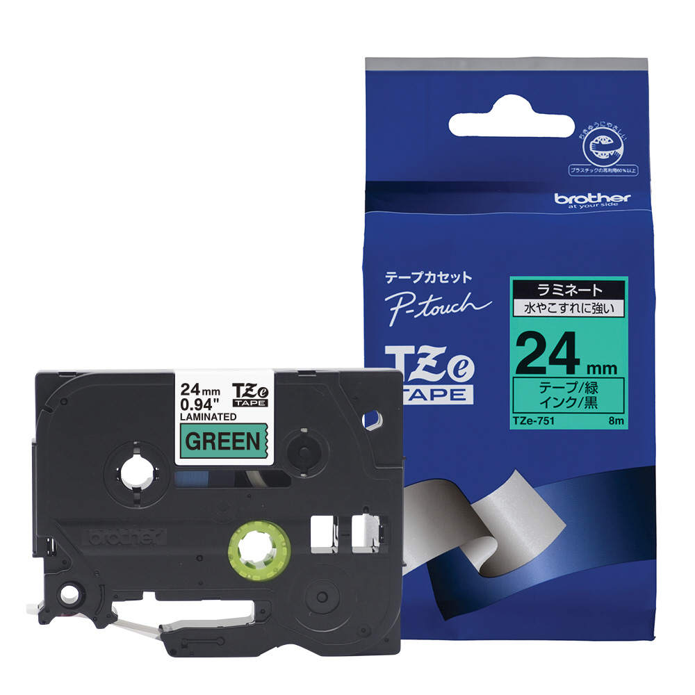 ラベルライター用ラミネートテープ 24mm幅(黒文字/緑) TZe-751 【864】
