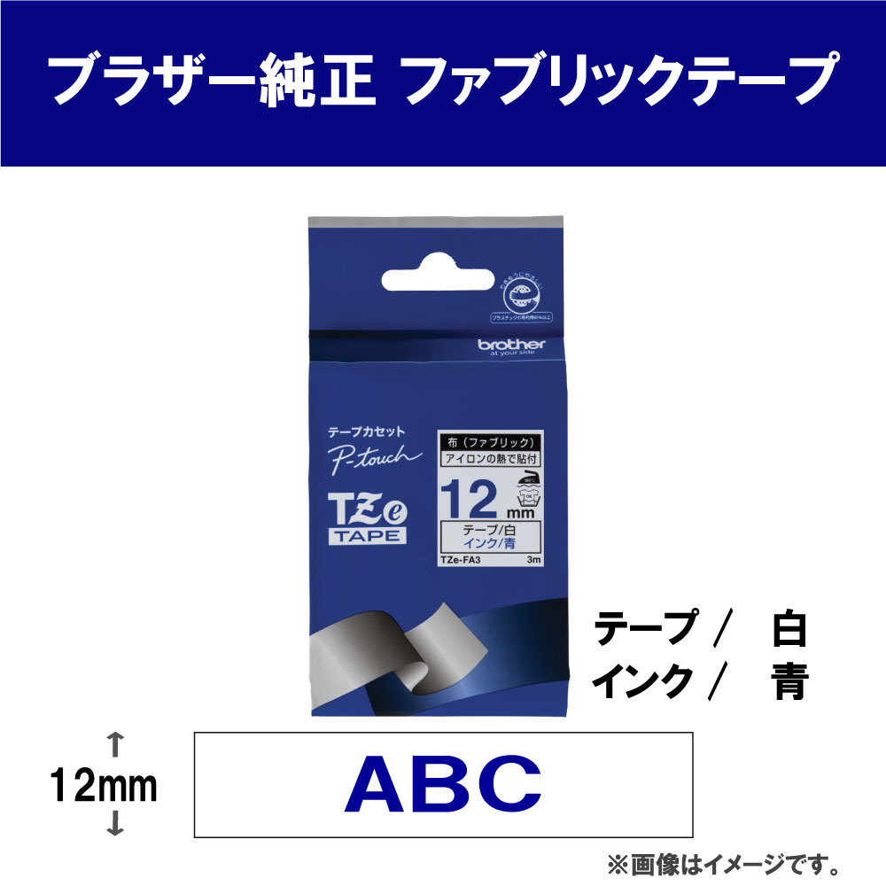 布 (ファブリック)テープ 12mm幅 (青文字/白) TZe-FA3