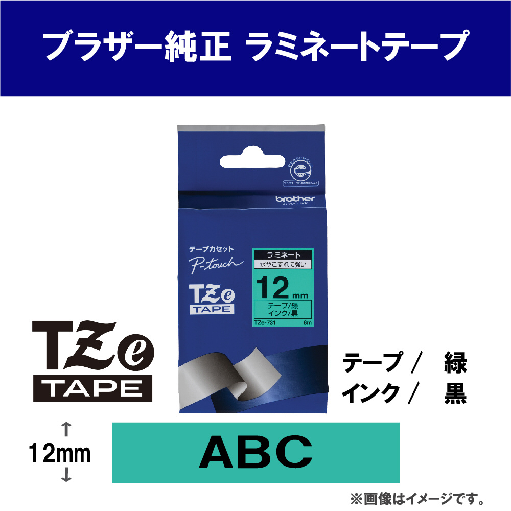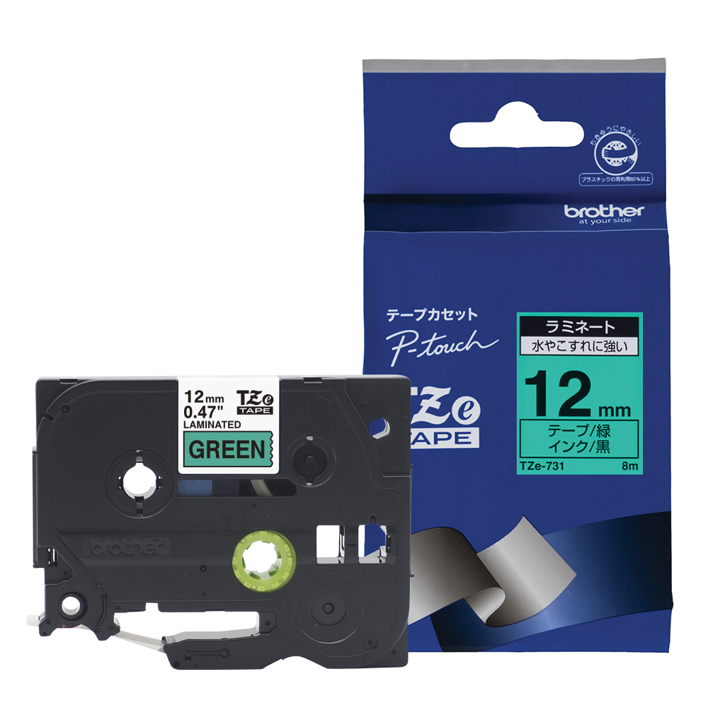 TZe-731 ラベルライター用ラミネートテープ 12mm幅(黒文字/緑)