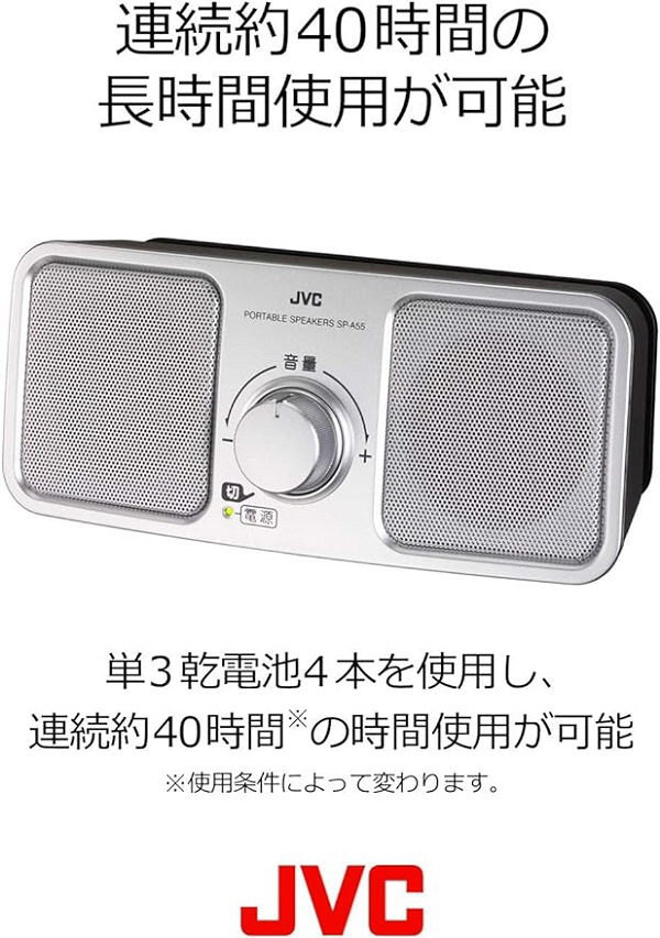 ・単3乾電池4本を使用し、連続約40時間の長時間使用が可能です。