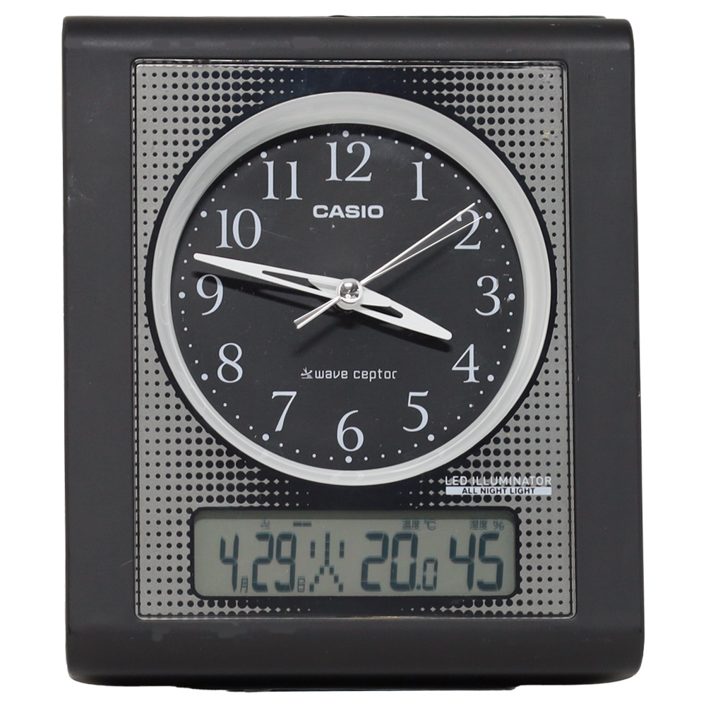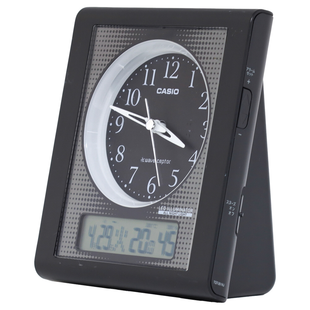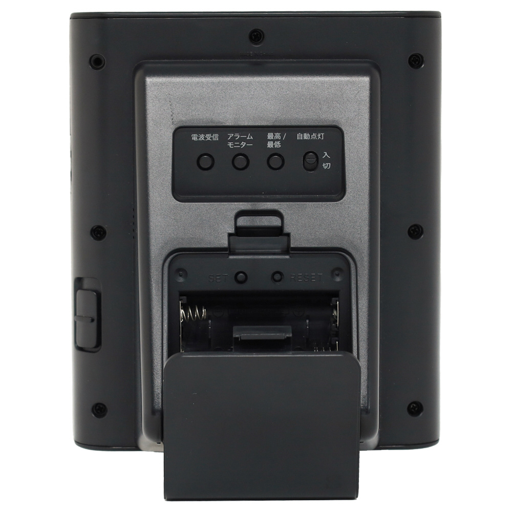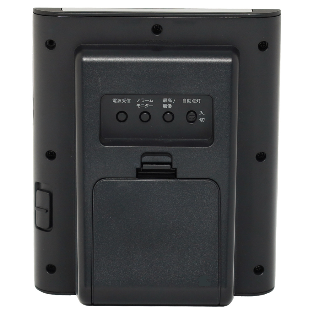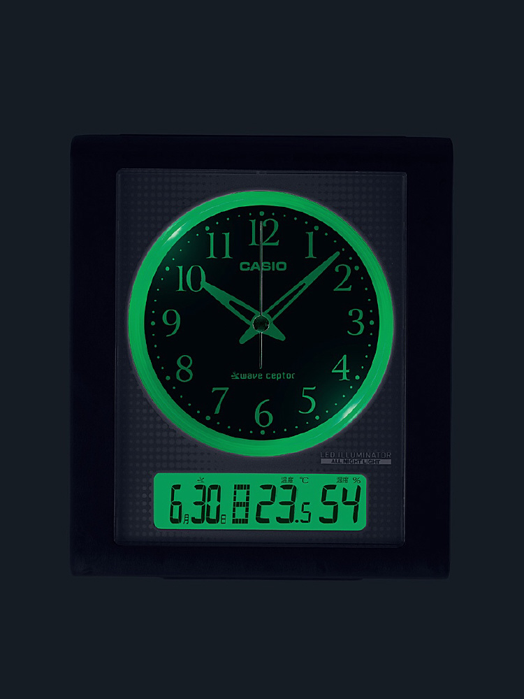 アラームをセットするとライトが点灯し続け、暗所でも時刻が見やすい常時点灯ライト機能付きの目覚まし電波時計です。