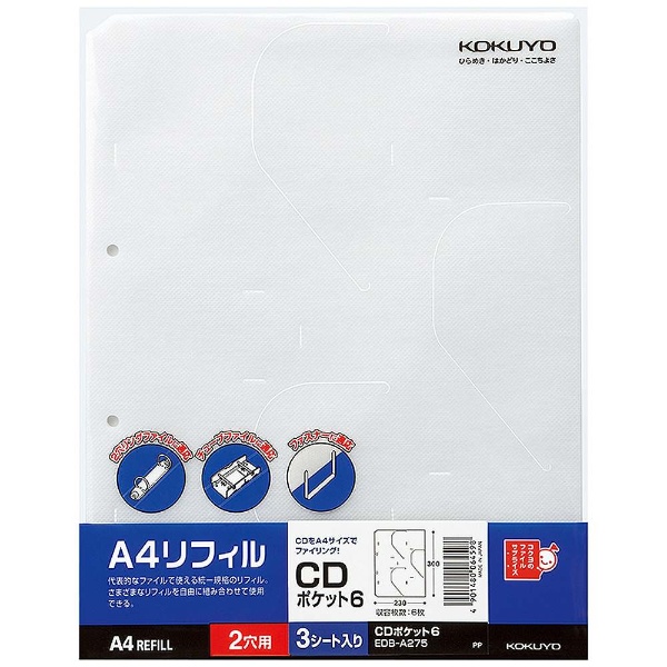 CD/DVD用ファイル 2穴ファイル (白・6枚収納×3枚) EDB-A275