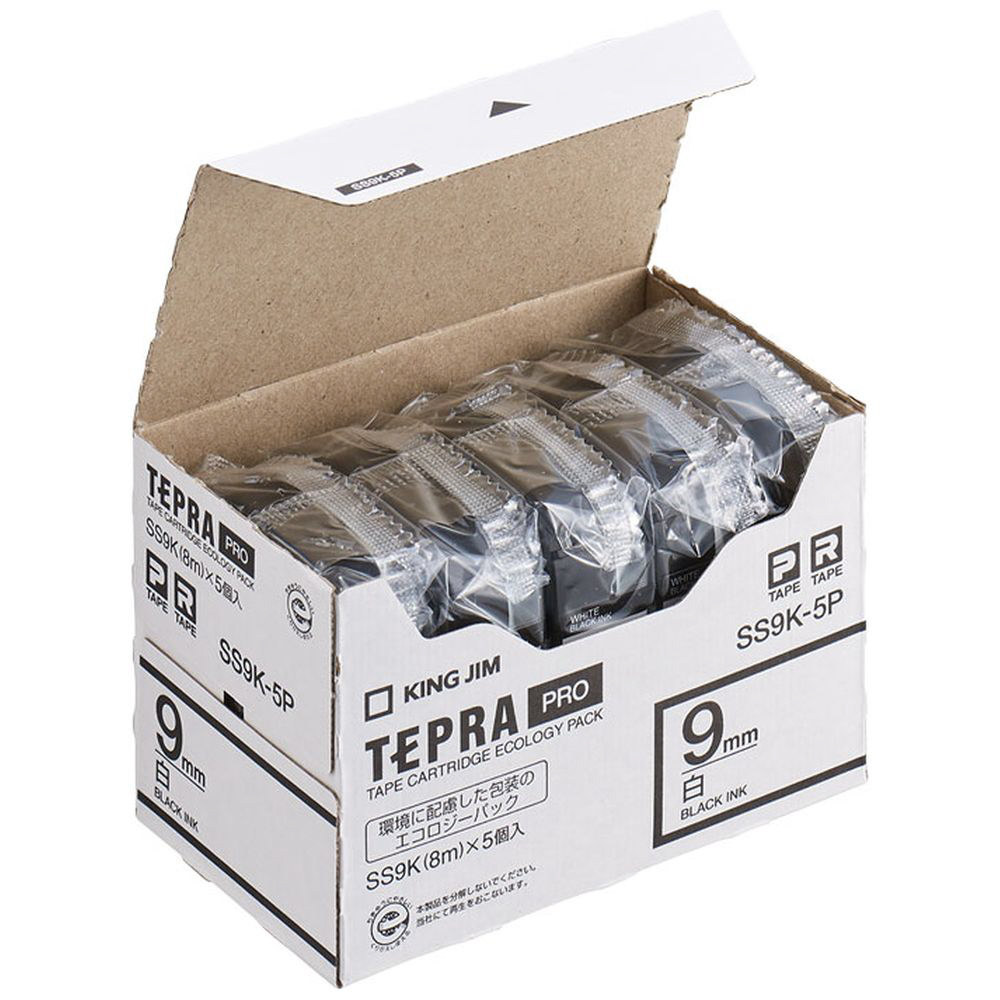 白ラベルテープ 「テプラPRO」(白テープ/黒文字/9mm幅・5個パック) SS9K-5P
