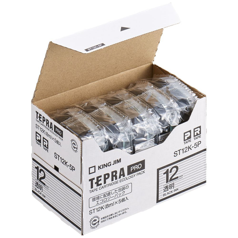 透明ラベルテープ 「テプラPRO」(透明テープ/黒文字/12mm幅・5個パック) ST12K-5P 【864】