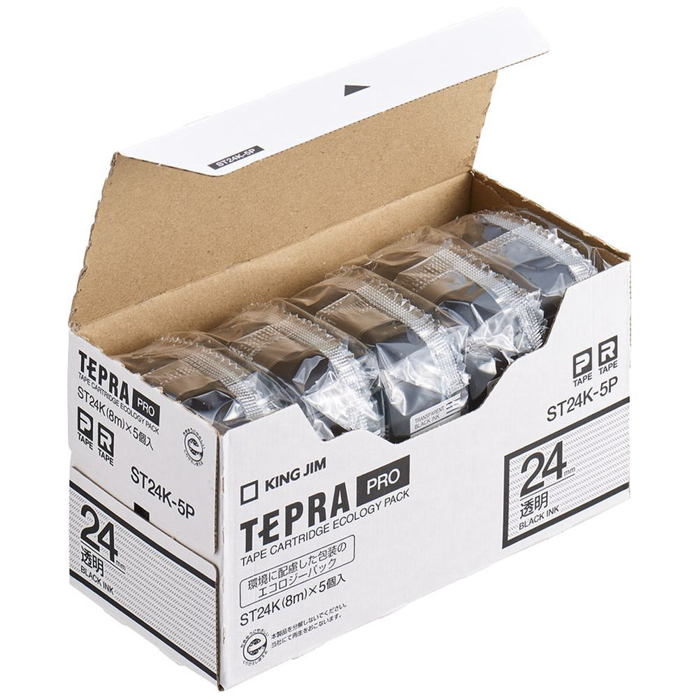 商品名 透明ラベルテープ 「テプラPRO」(透明テープ/黒文字/24mm幅・5個パック) ST24K-5P