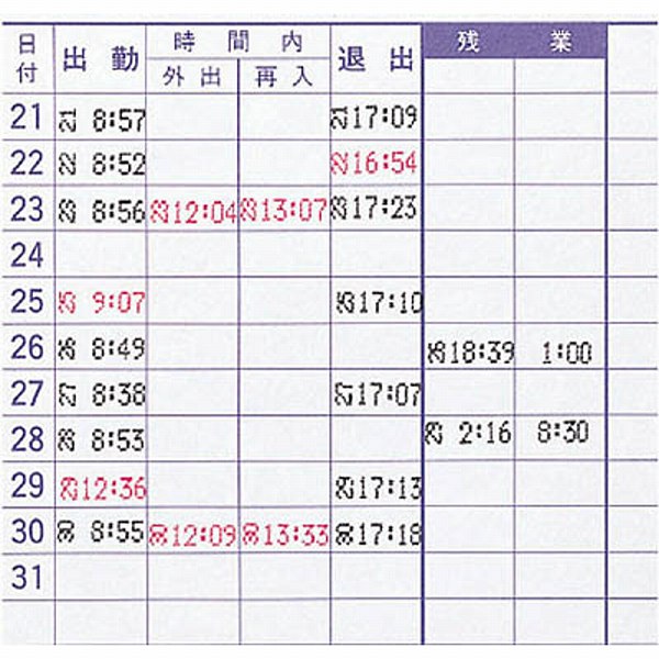 カルコロ・シリーズ、タイムボーイ6用タイムカード。100枚入り。