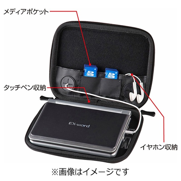 イヤホン・タッチペンをすっきり収納できるセミハード電子辞書ケース。