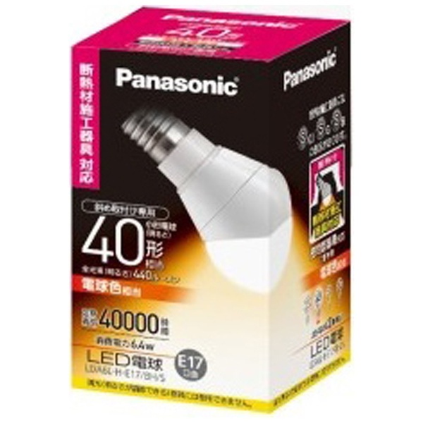 斜め取付け専用LED電球 (小形電球形[斜め取付け専用・断熱材施工器具対応タイプ]・全光束440lm/電球色相当・口金E17) LDA6L-H-E17/BH/S