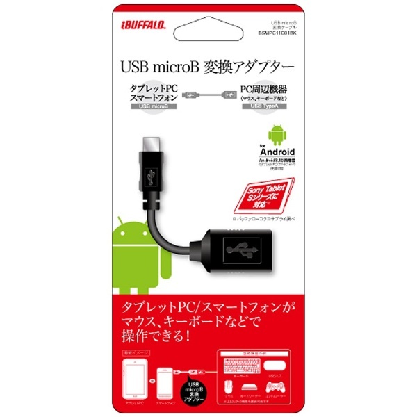 タブレット/スマートフォン対応[Android・USB microB] USB変換アダプタ 0.1m (USB A→USB microB 接続) BSMPC11C01BK
