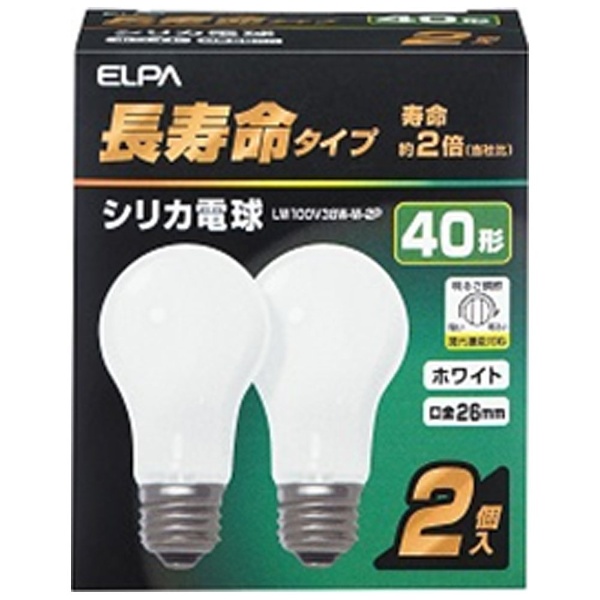 LW100V38W-W-2P 長寿命シリカ電球(40形/全光束440lm/E26口金/ホワイト/2個入り)