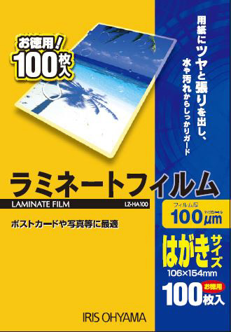 100ミクロンラミネーター専用フィルム (はがきサイズ 100枚) LZ-HA100