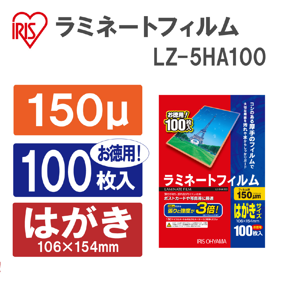 150ミクロンラミネーター専用フィルム (はがきサイズ 100枚) LZ-5HA100