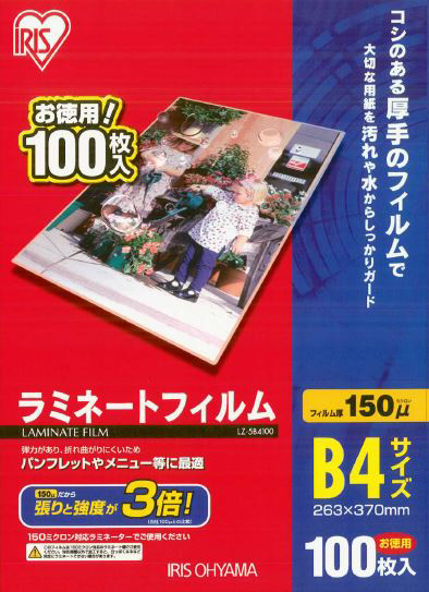 150ミクロンラミネーター専用フィルム (B4サイズ 100枚) LZ-5B4100