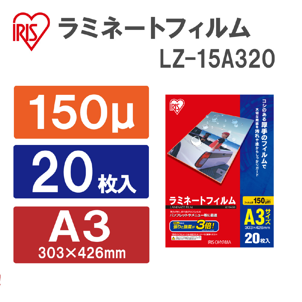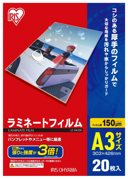 | 商品名 | 150ミクロンラミネーター専用フィルム (A3サイズ 20枚) LZ-15A320 |