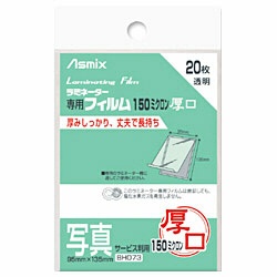 150ミクロンラミネーター専用フィルム 「アスミックス」(写真サービス判用 20枚) BH073