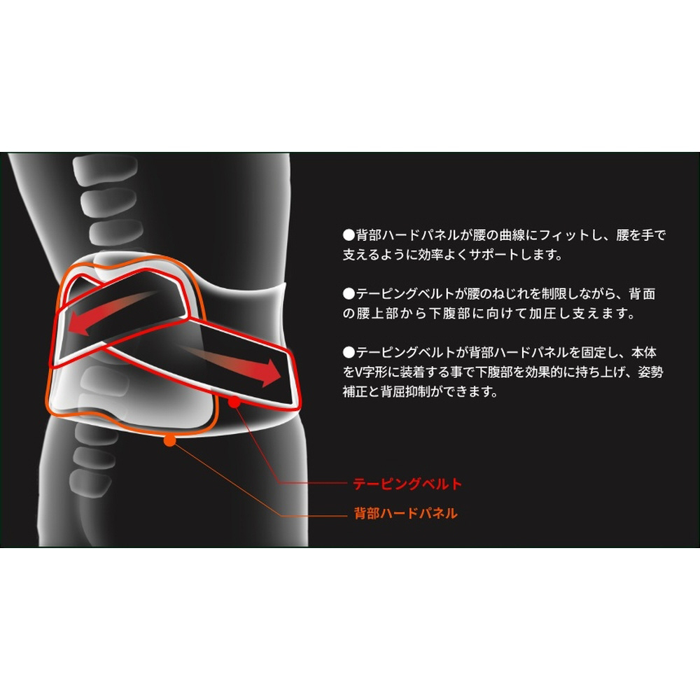 腰の曲げ伸ばしの時のつらさに、腰椎から骨盤にかけて、より強度に”しっかり”サポート!