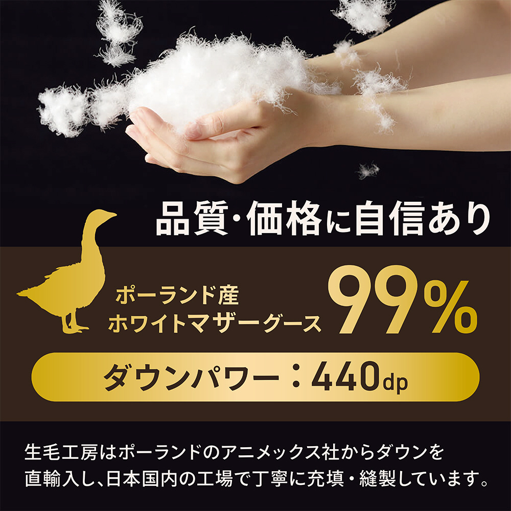 合い掛け羽毛布団「生毛ふとん」 XXL520-A [ダブルロング(190×230cm) /春・秋用 /ポーランド産ホワイトマザーグースダウン99% ] 【キャンセル不可】