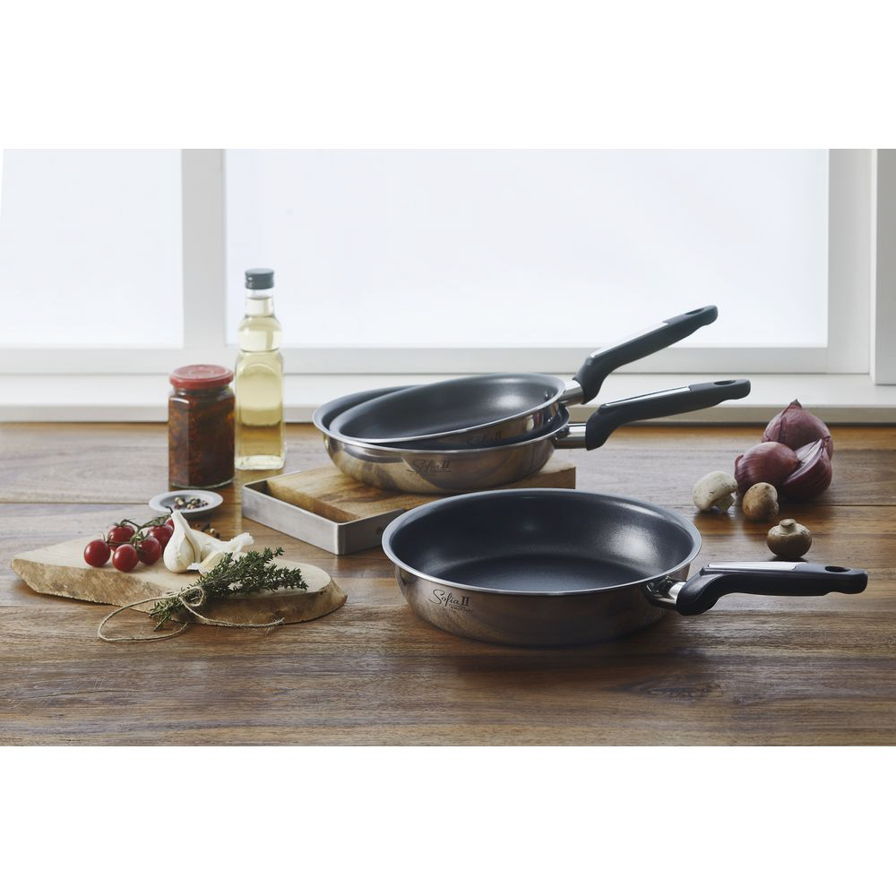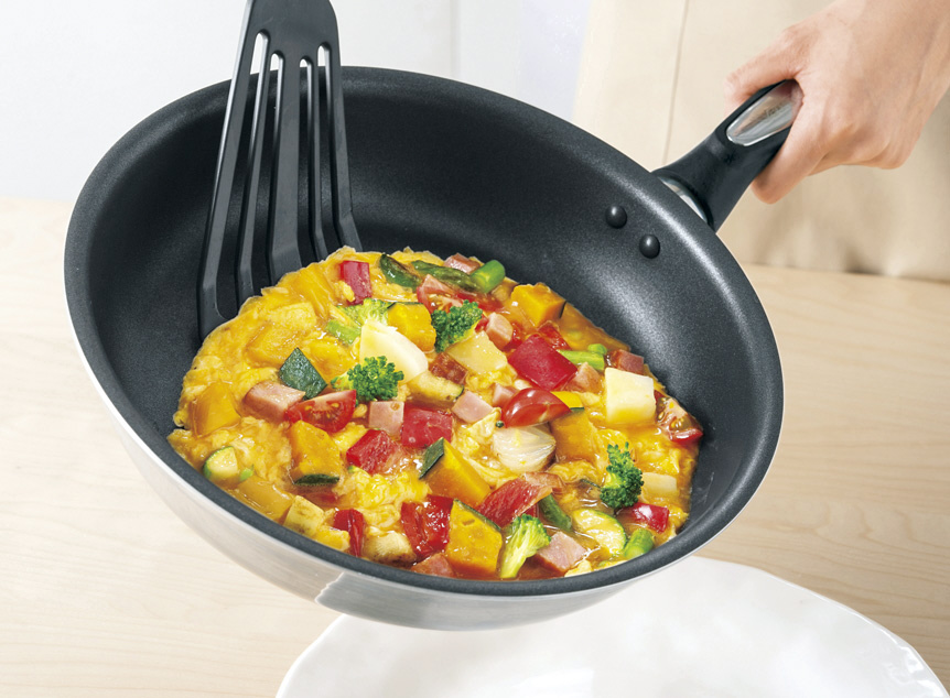 抜群の耐摩耗性を持つナヴァロン3コートで焦げ付きを防止するフライパンです。