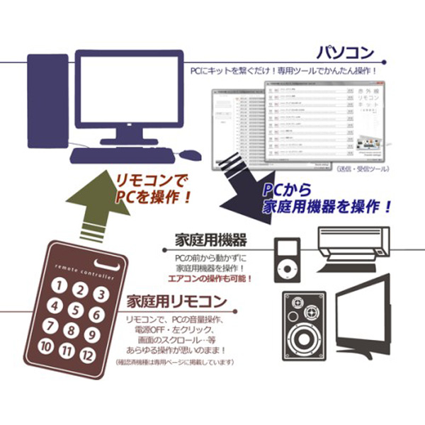 パソコンから家庭用機器をリモコン操作、リモコンでパソコンを操作どちらもコントロール可能な多機能キット!(キット版)