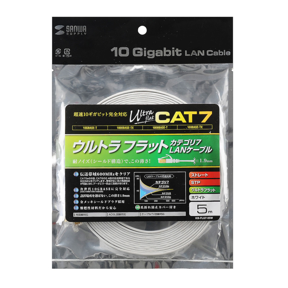| 商品名 | KB-FLU7-05W(カテゴリ7/ウルトラフラットLANケーブル/5m/ホワイト) |