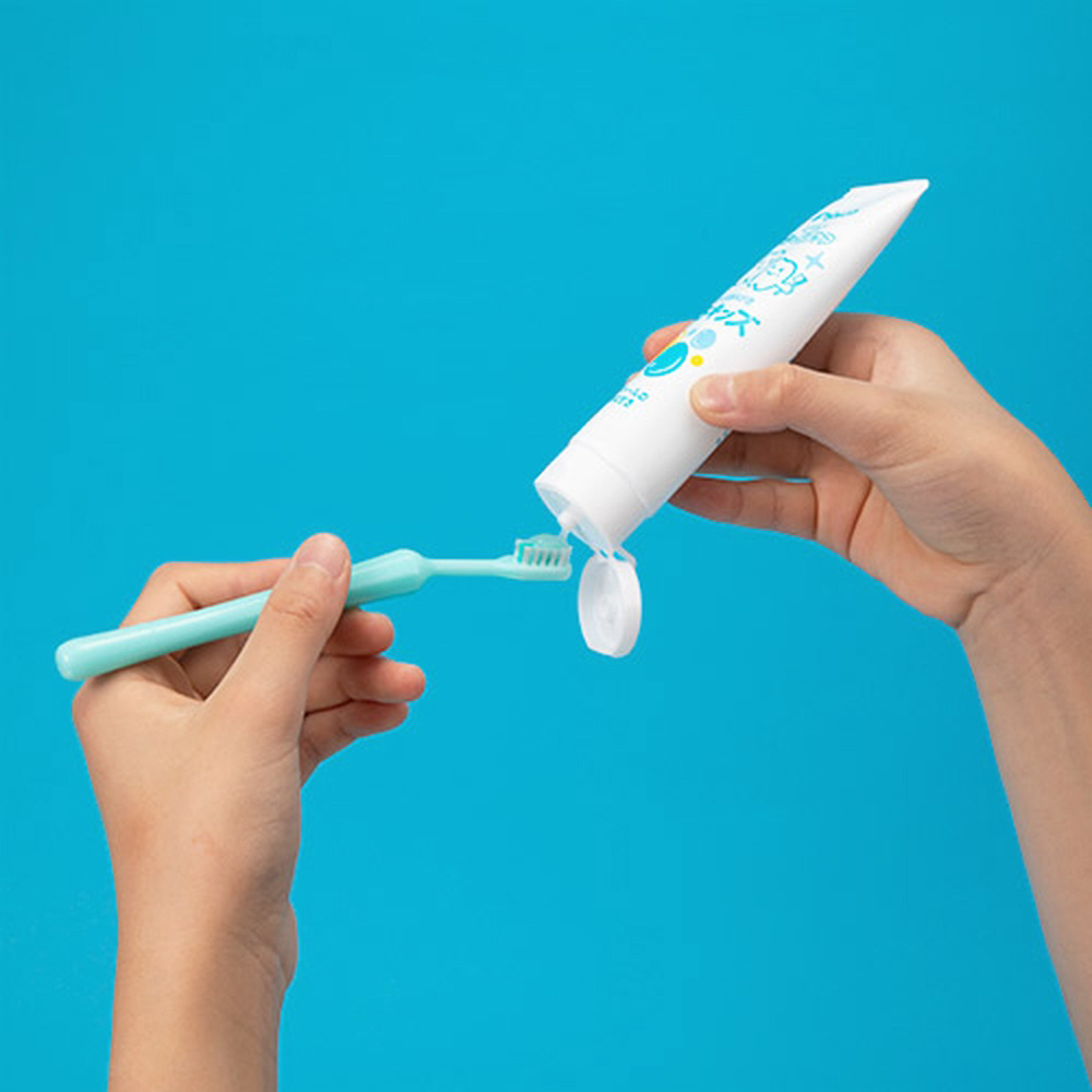 歯の汚れやむし歯が気になってくる、離乳食卒業の頃から。1才6ヵ月頃からの乳歯の性質を考えてつくられたジェル状歯みがきです。歯の再石灰化を促進し歯質を強化する薬用成分フッ素(フッ化ナトリウム)配合。むし歯の発生と進行を予防します