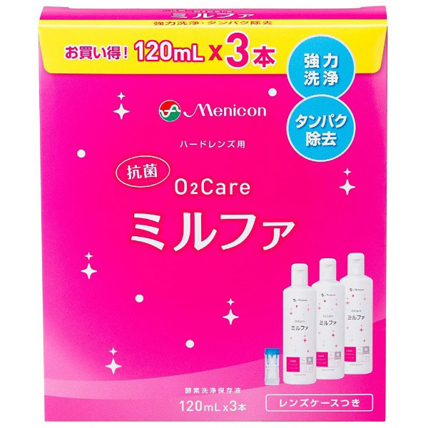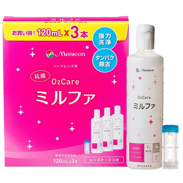 | 商品名 | 【ハード用/洗浄保存液】抗菌O2ケアミルファ3本パック(120ml×3本) |