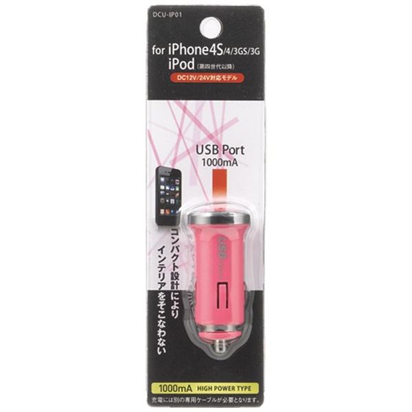 【在庫限り】 iPhone/iPod対応[Dock] USBポートDC充電器[Dock] ピンク DCU-IP01P [1ポート] 【864】