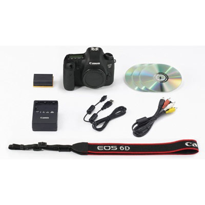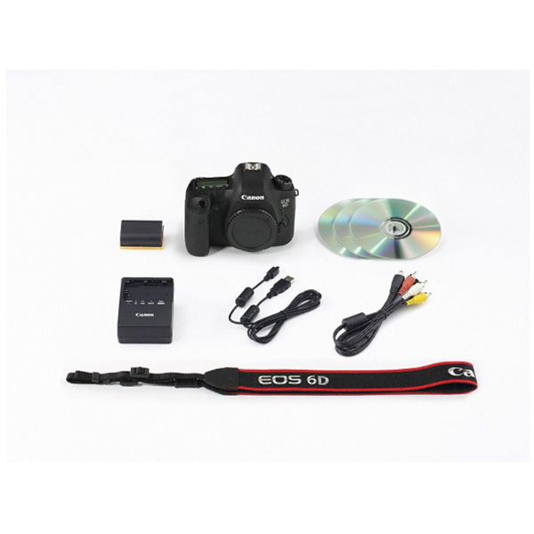 | 付属品 | バッテリーチャージャー LC-E6、バッテリーパック LP-E6、インターフェースケーブル IFC-200U、ステレオAVケーブル AVC-DC400ST、EOS DIGITAL Solution Disk、使用説明書 CD-ROM、ソフトウエア使用説明CD-ROM、ワイドストラップ EW-EOS6D |