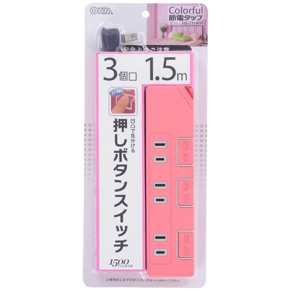 | 商品名 | HST1147P(プッシュスイッチ式タップ/1.5m/2P/3個口/ピンク) [OAタップ] 【852】 |