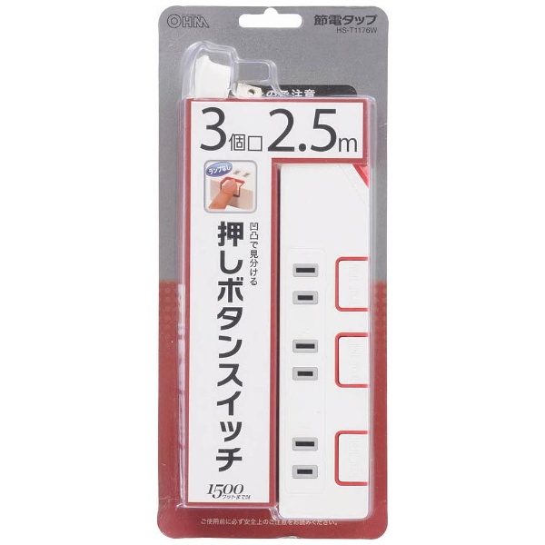 | 商品名 | HST1176W(プッシュスイッチ式タップ/2.5m/2P/3個口/ホワイト) [OAタップ] 【864】 |