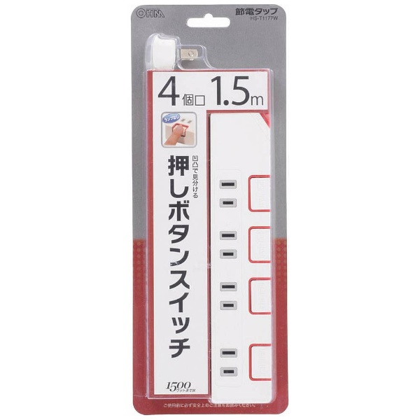 HST1177W(プッシュスイッチ式タップ/1.5m/2P/4個口/ホワイト) [OAタップ] 【864】