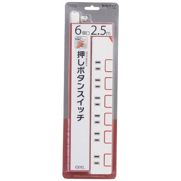 プッシュスイッチ式節電タップ (6個口・2.5m・ホワイト) HST1180W [OAタップ]