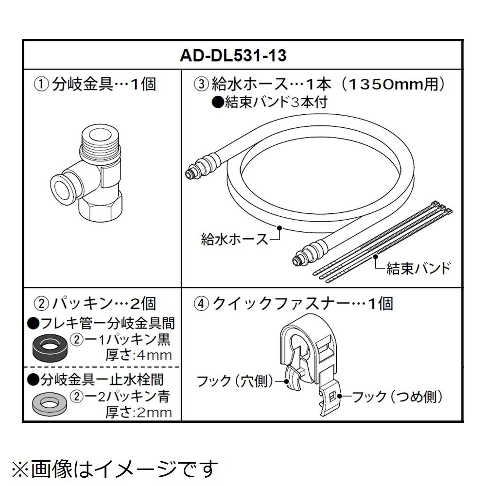 温水便座用給水ホース 1.3m 分岐金具付 AD-DL531-13