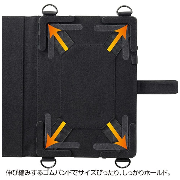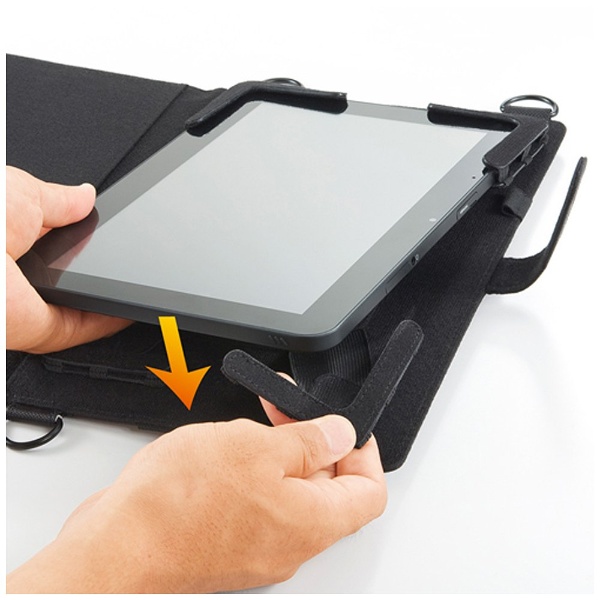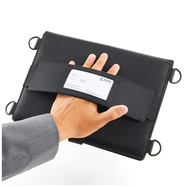 ショルダーベルト・ハンドベルト・ペンフォルダー付き10.1型タブレットPCケース。
