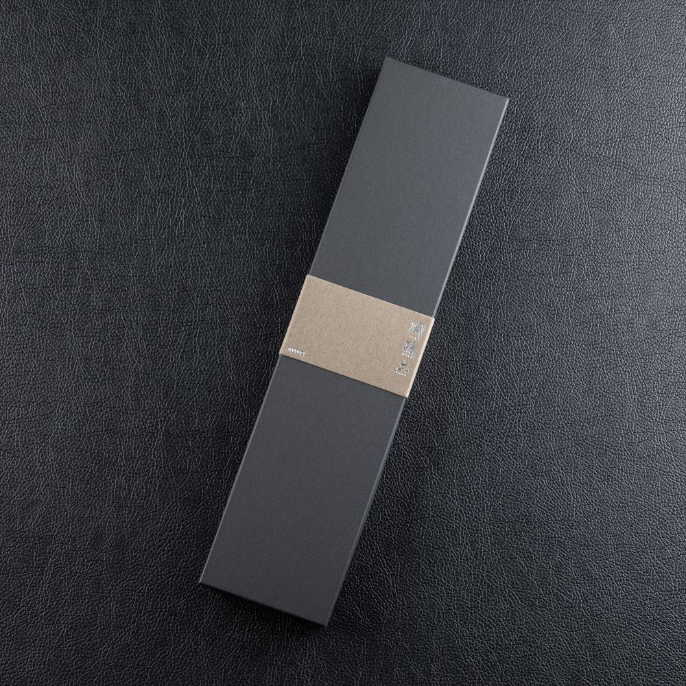 ■特殊精密接合(ろう付け)の技術を利用し、背側と刃側のコントラストで刃の波紋とハンドルは白合板を採用し流麗なデザイン性を表現しました。